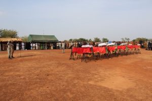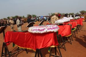 Les six policiers tués dans la soirée du vendredi cinq octobre dernier dans une embuscade sur l’axe Titao – Sollé ont été inhumés ce lundi 08 Octobre 2018 dans l’après-midi à Ouahigouya. La cérémonie d’inhumation s’est déroulée en présence du ministre de La Sécurité, des autorités militaires, paramilitaires, des membres des familles éplorées et des amies et connaissances. Des autorités administratives, religieuses et coutumières ont aussi assistées à la levée des corps. Apres une décoration à titre posthume, la lecture des oraisons funèbres, les victimes ont été enterrées au cimetière de Oufré. A l’issue de l’enterrement,